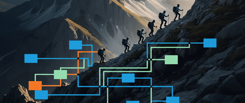 La Lección de la Montaña: En una ascensión, la vida del equipo encordado depende de la autonomía y confianza en cada eslabón. Si el líder tiene que microgestionar cada decisión, el ascenso se paraliza y el riesgo aumenta exponencialmente.