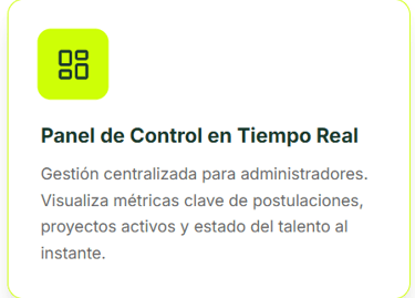 Sin funcionalidades de relleno. Solo lo que necesitas para conectar talento con oportunidades de forma ágil.