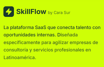 El primer Marketplace de Talento Interno diseñado para consultoras y empresas medianas en Latinoamérica. Reduce costos de contratación un 35% y elimina el "bench time" de tus equipos.